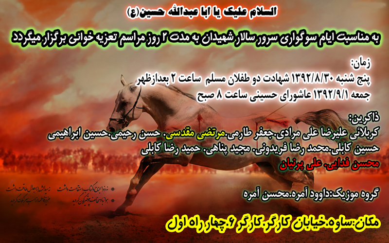 اطلاعیه تعزیه ساوه دهه دوم محرم 1392