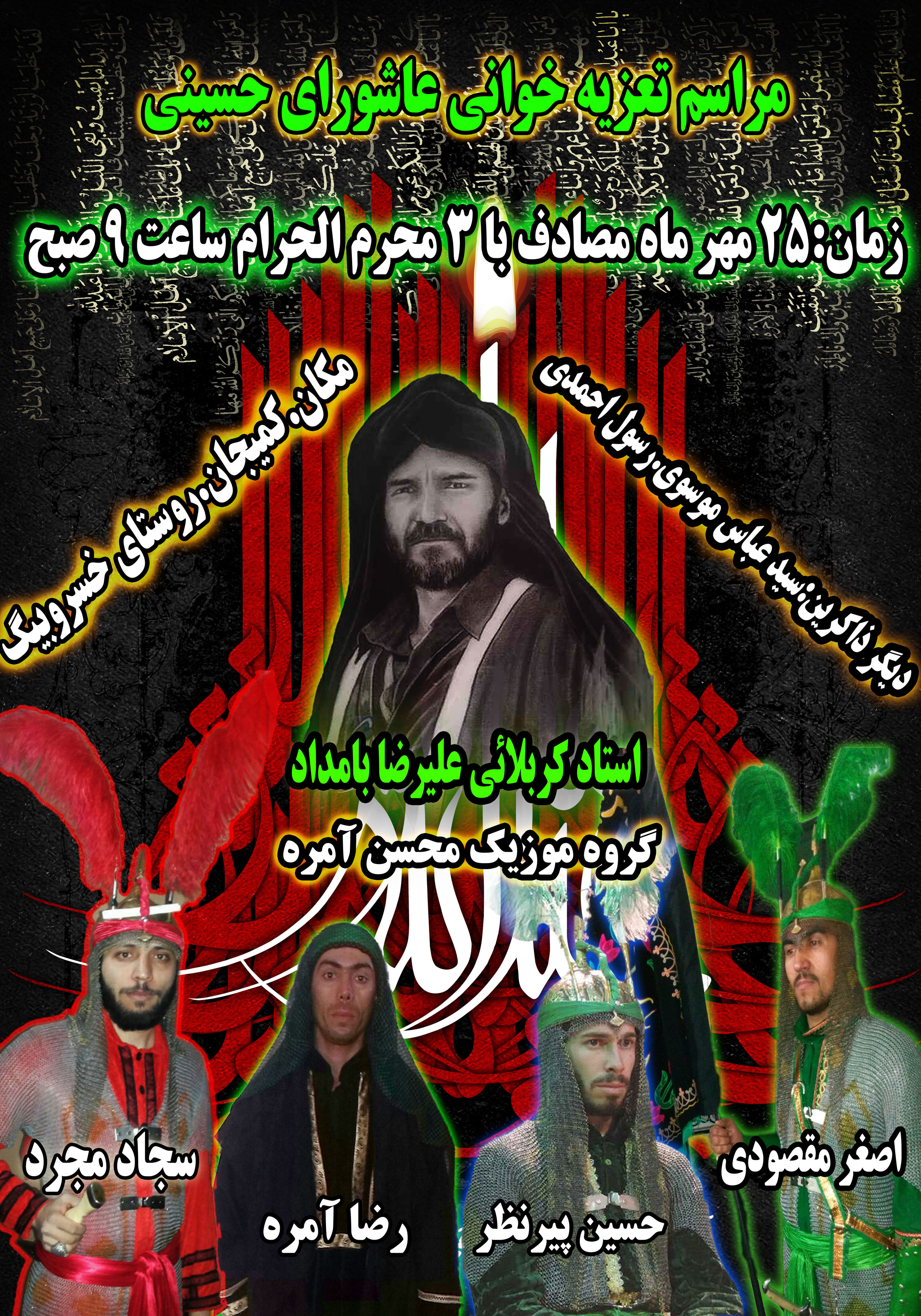ذاکرین ثابت:سید عباس موسوی.کربلایی رضا آمره.سجاد مجرد.حسین پیرنظر.رسول احمدی