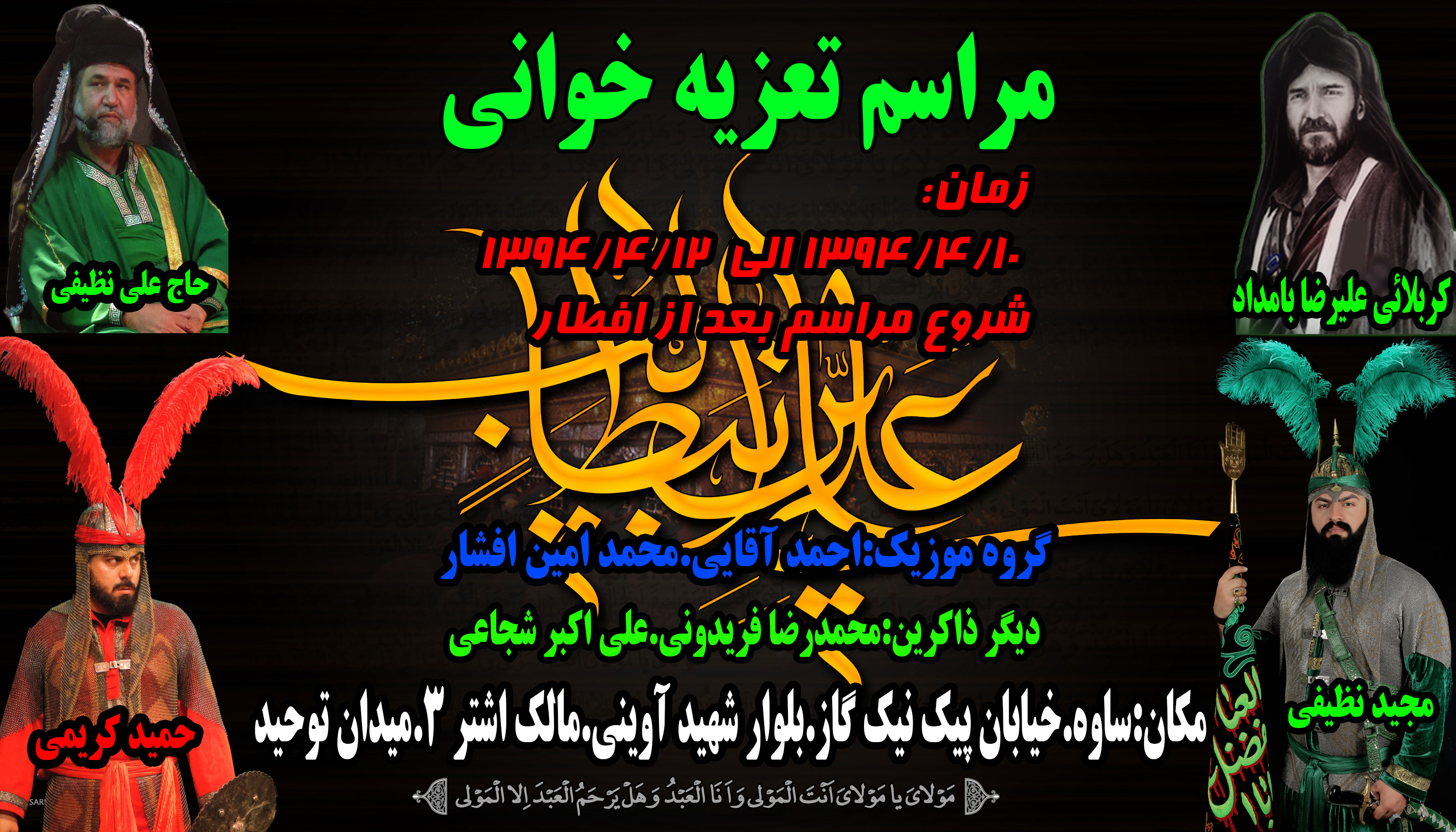 با حضور تعزیه خوانان زیر برگزار میگردد.